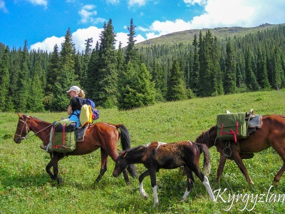 Riding along Tamga gorge to the former mountain base. Putting camp on plateau, near fir forest. Overnight in tents.
