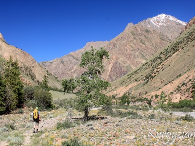 2) From Karakol town by car following next route Turgen Aksuu gorge – Chon Ashuu pass (3822m) – Kuilu valley – 15-20 km up along Kuilu river. Then further trekking along Kuilu valley. Approach to possible BC area might take from 1 to 3 day (25-40km), depending desired mountaineering area. In the upper reaches of the valley there are several glaciers coming out side valleys. Each glacier can be considered as potential mountaineering area